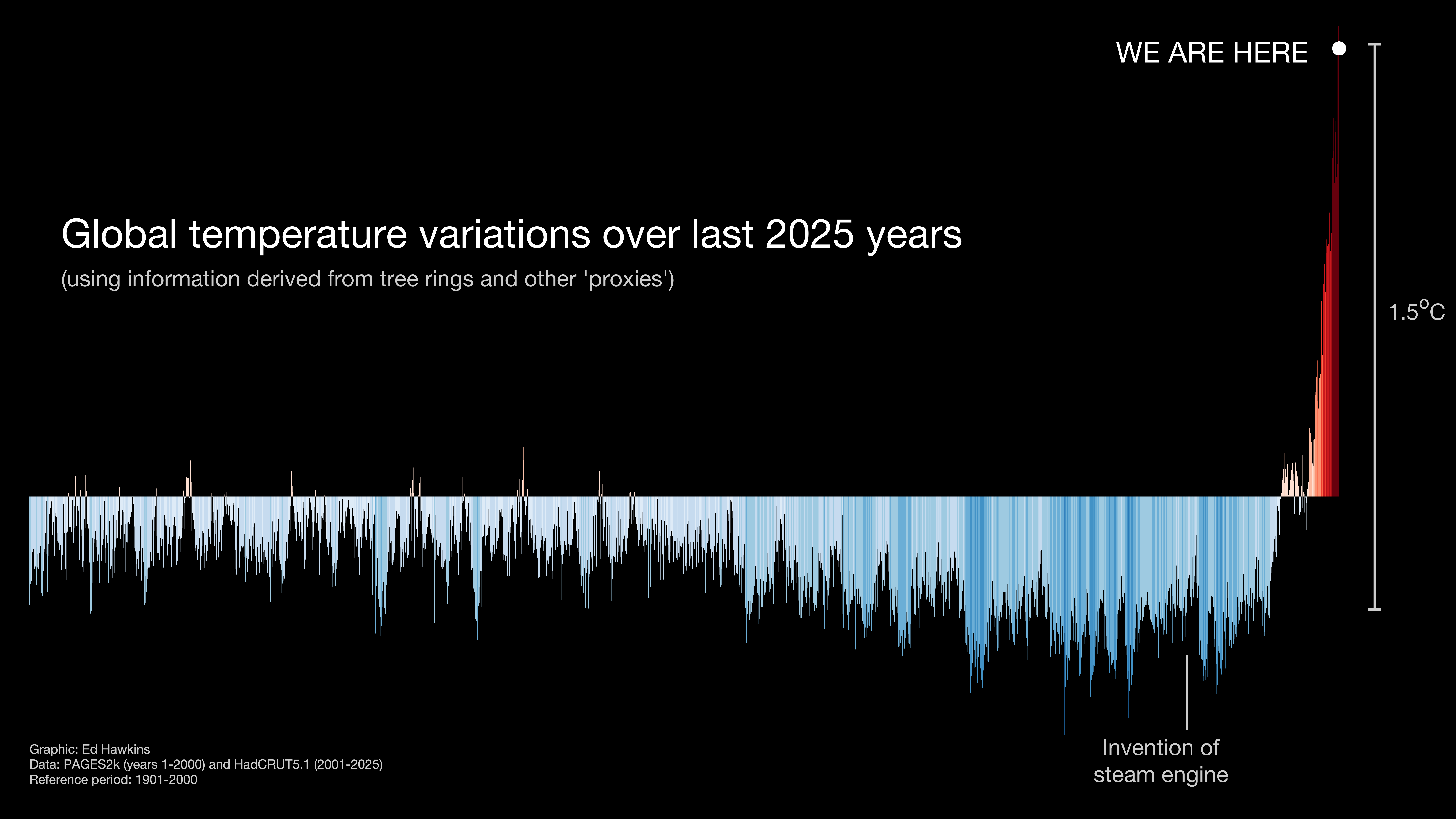 Global temperature for the last 2000 years (black background)