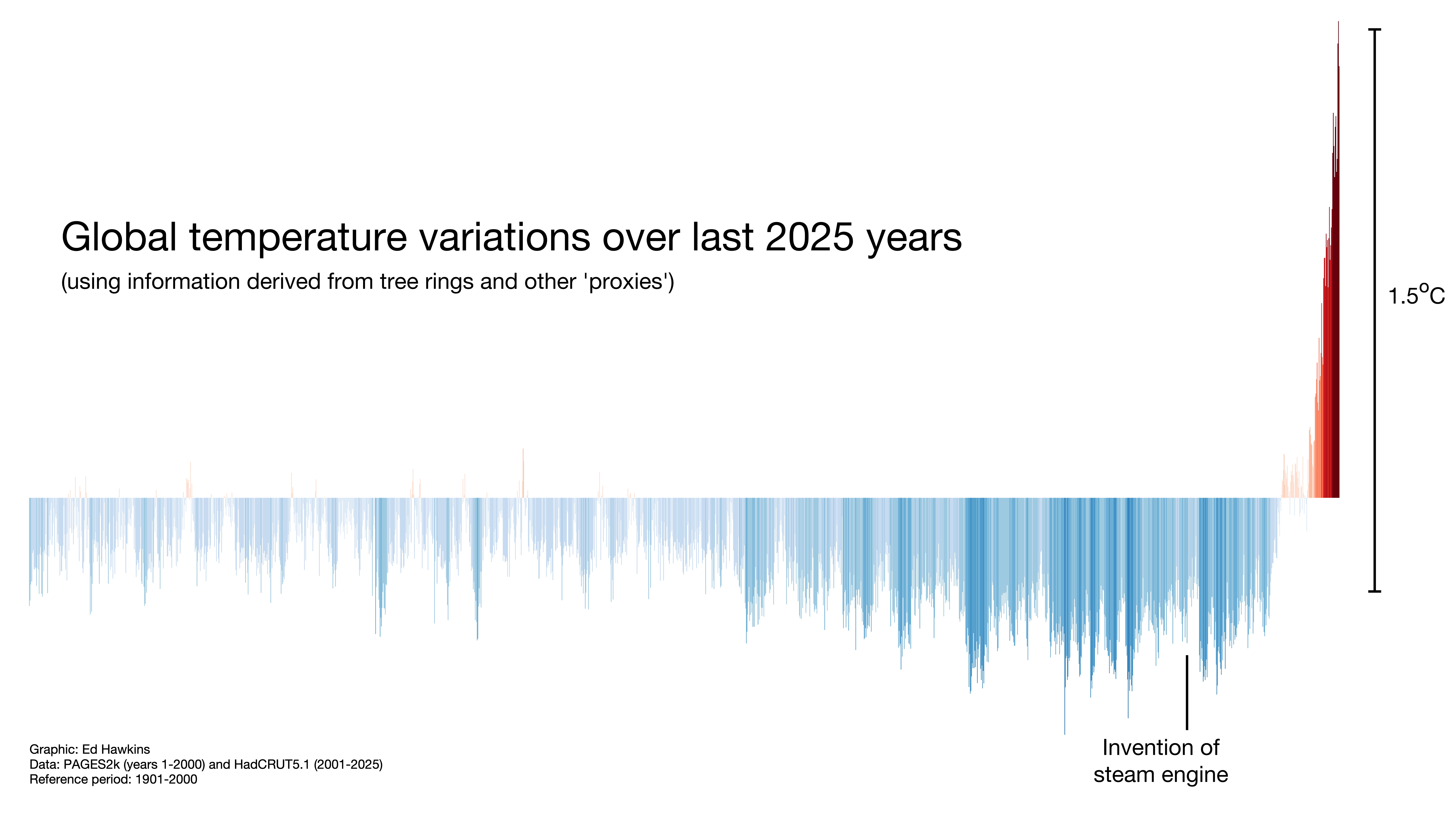 Global temperature using bar charts for the last 2000 years
